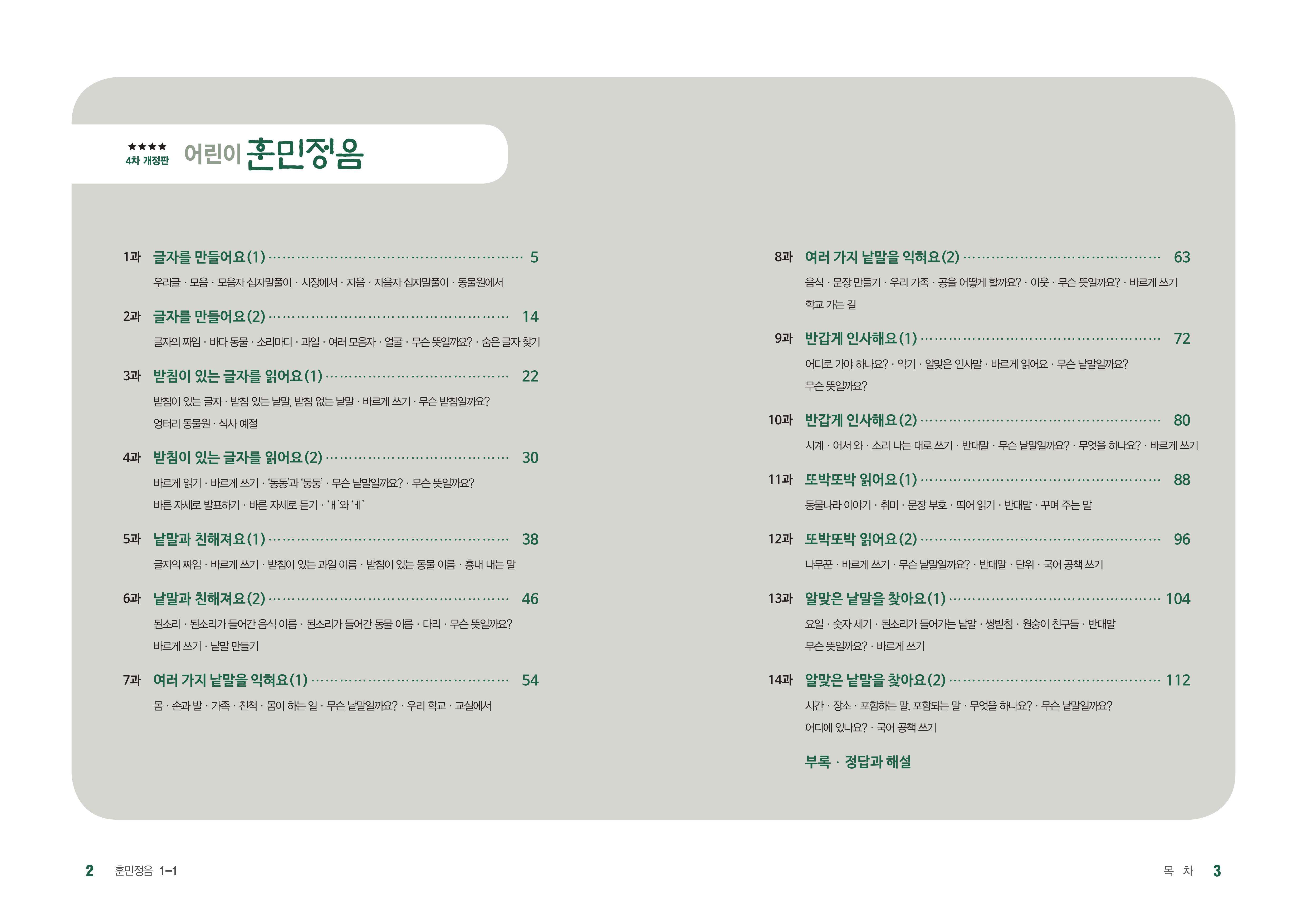 어린이 훈민정음은 초등학교 학생들의 어휘력 향상을 위해, 2002년 첫 출간 된 이래로 지금까지 교사와 학부모들로부터 좋은 평가를 받아 왔습니다. 그리고 교과서 어휘를 중심으로 편집되었기 때문에 새 교과서가 나올 때마다 개정판이 나왔으며, 4차 개정판은 2024년부터 적용되는 새 교과서 내용을 반영한 것입니다.