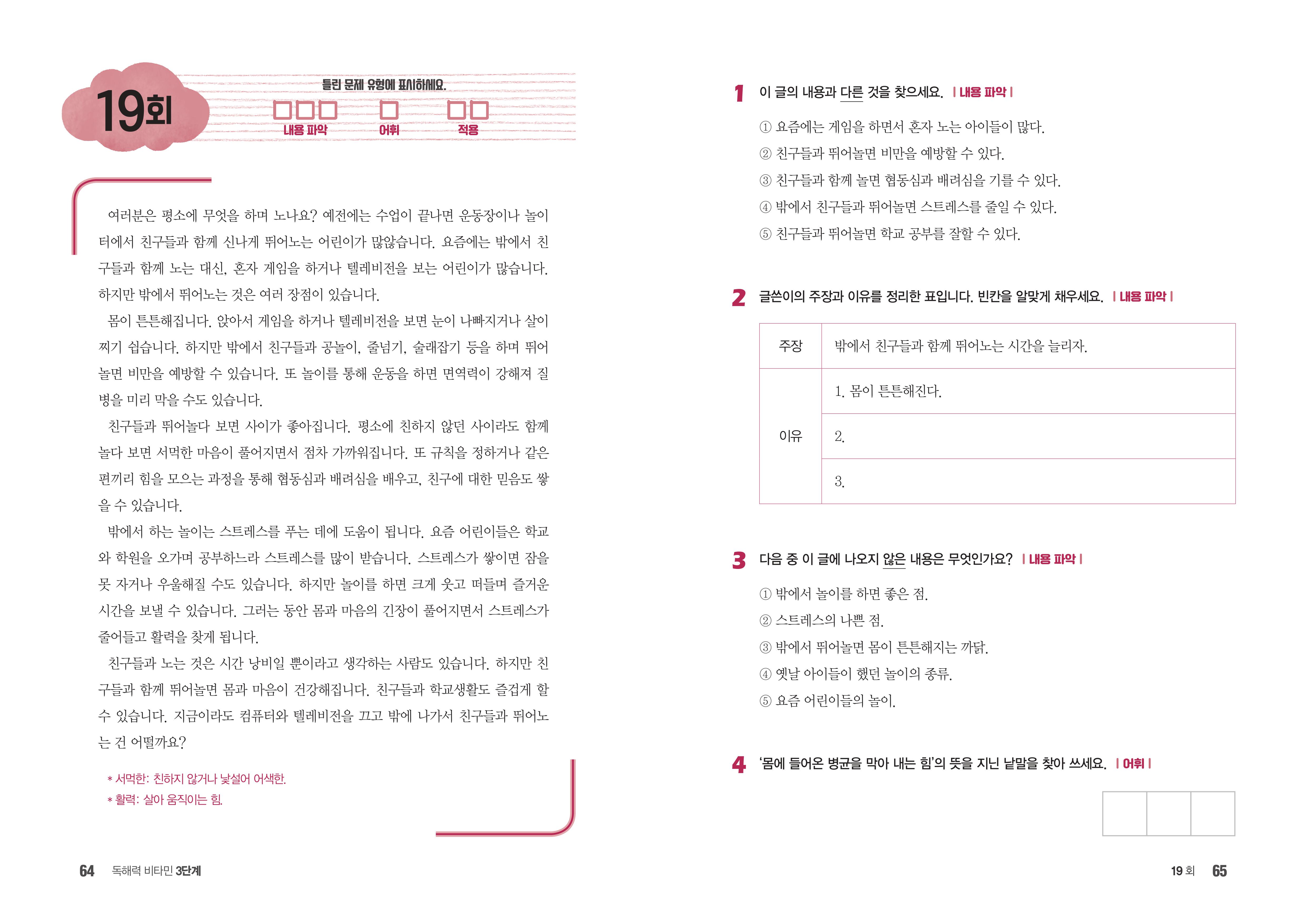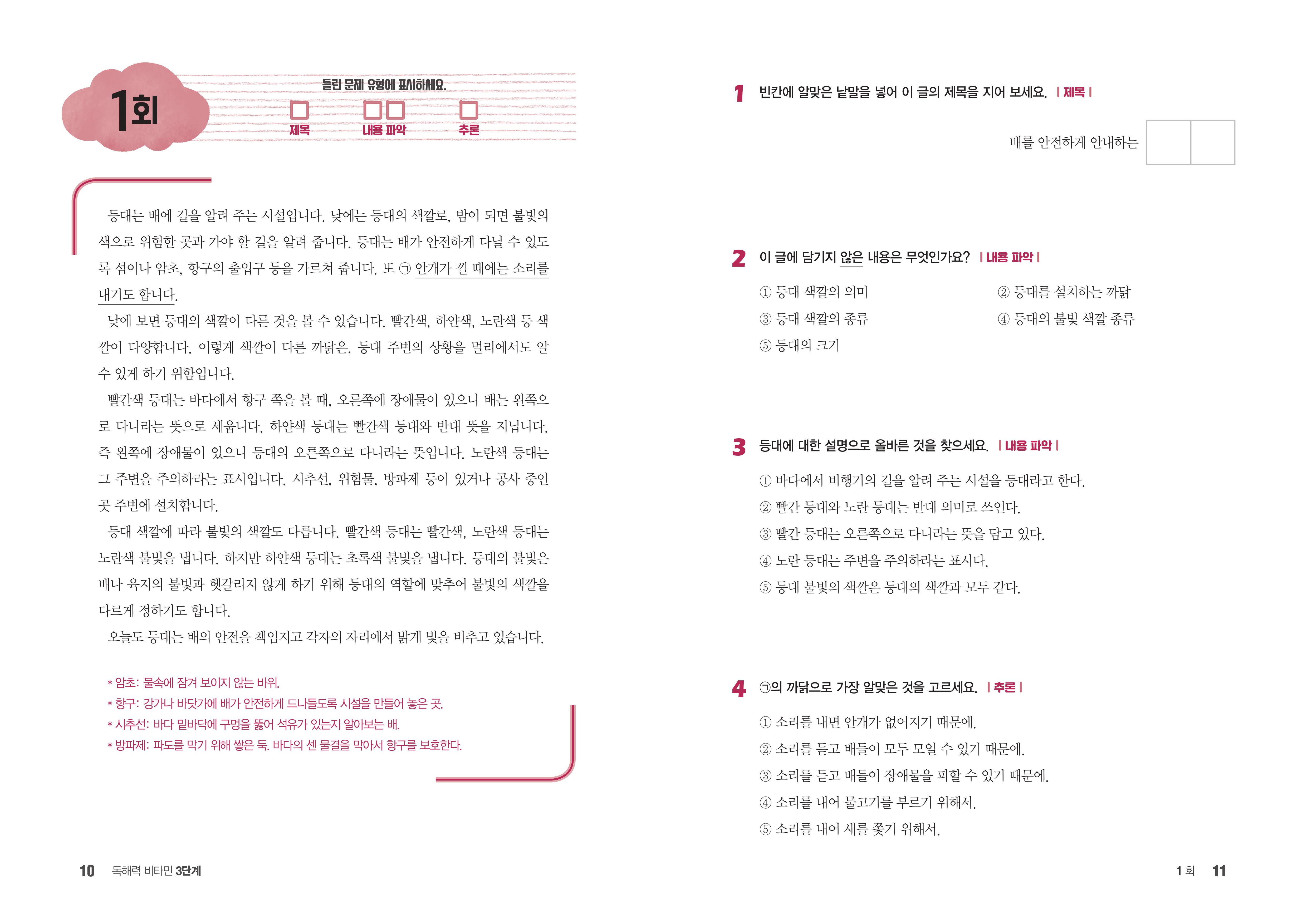 <독해력 비타민> 3단계 차례