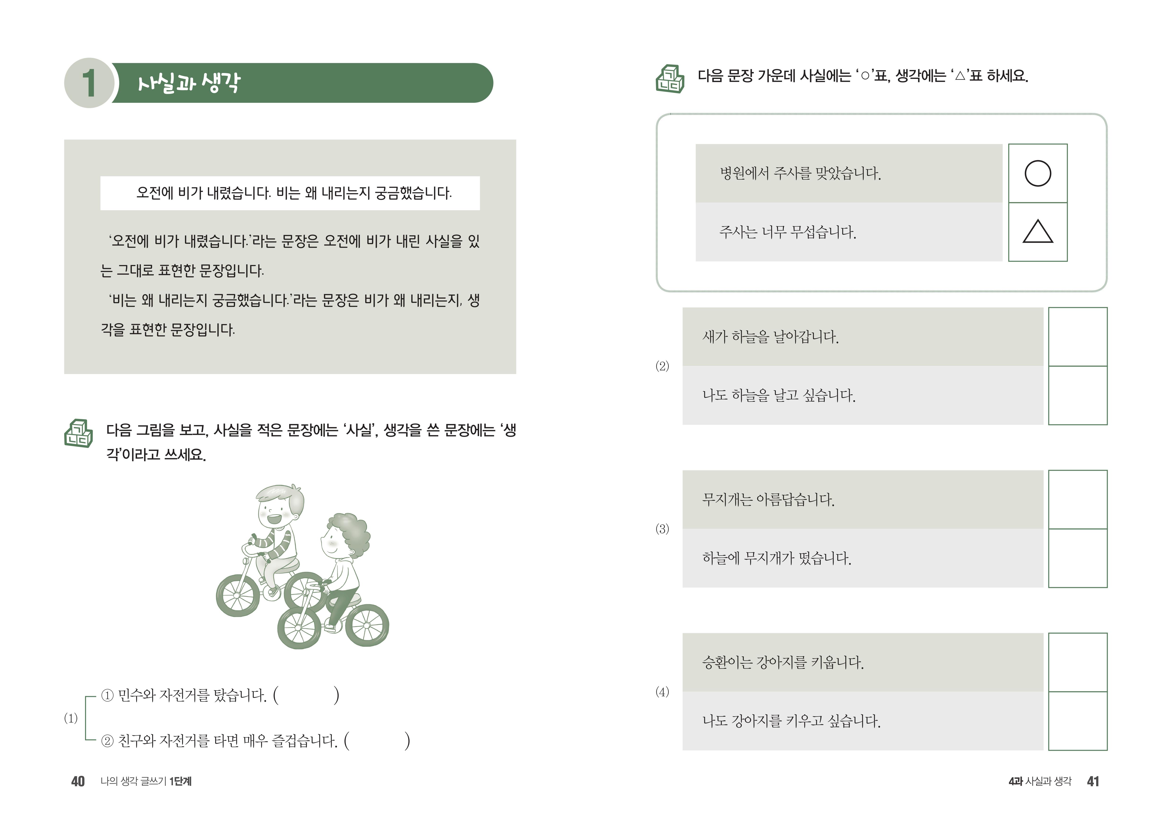 사실과 생각・사실을 나타내요・생각을 표현해요・사실과 생각을 써요